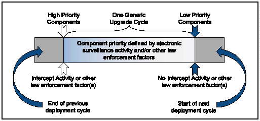 Once those CALEA software solutions that the FBI has chosen to reimburse have been completed, it is in the interest of the FBI and industry to minimize, to the extent practicable, the costs associated with deploying the CALEA solution in carriers' networks. The costs associated with deploying CALEA-compliant solutions are expected to be significantly reduced if carriers are allowed to incorporate the deployment of CALEA into their normal generic upgrade cycles.20 To this end, the FBI's Flexible Deployment Plan provides the opportunity for any carrier to voluntarily supply information to the FBI so that the carrier and the FBI may cooperatively develop a CALEA deployment schedule for that carrier. These schedules may be consistent with a carrier's normal deployment processes and schedules if the schedules maximize the timely deployment of solutions on those switches that are of highest priority to law enforcement.