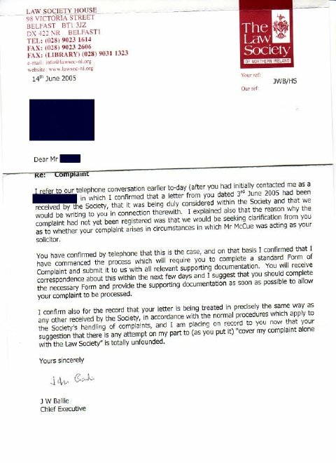 He refused to forward the material to a solicitor that I was instructing, which I believe would be a conflict of interest, due to the fact that McCue was acting for and on behalf of the national newspaper and was both acting on my behalf by way of giving advice before during after I signed the confidentiality agreement, he also insisted that he retain copies of my agreement in his office for safe keeping.