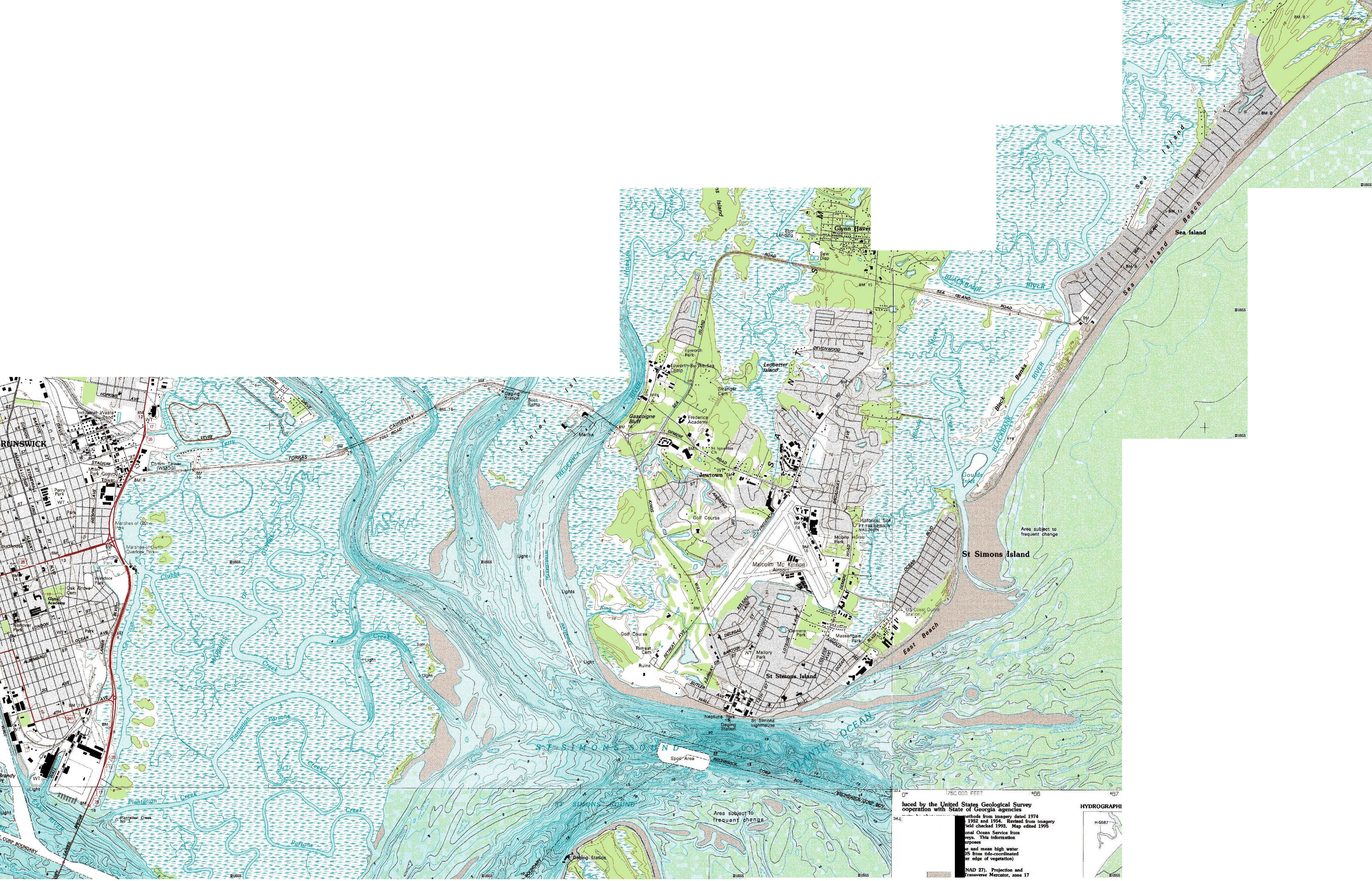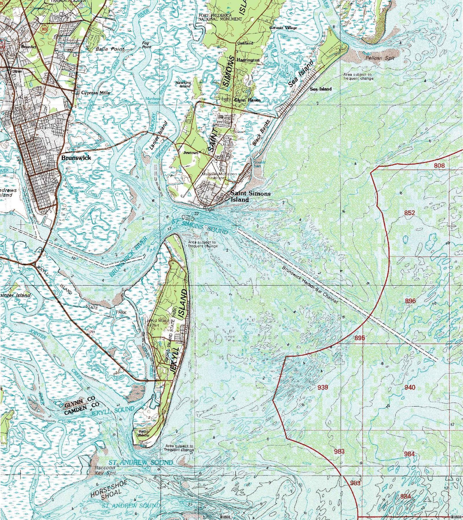 waters of St. Simons Sound and the Atlantic Ocean, from surface to