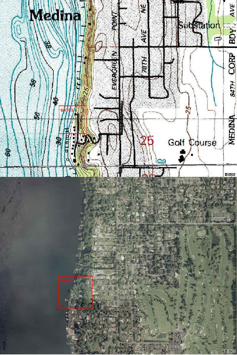 Facility and Gates Residence located on Lake Washington. Entry into