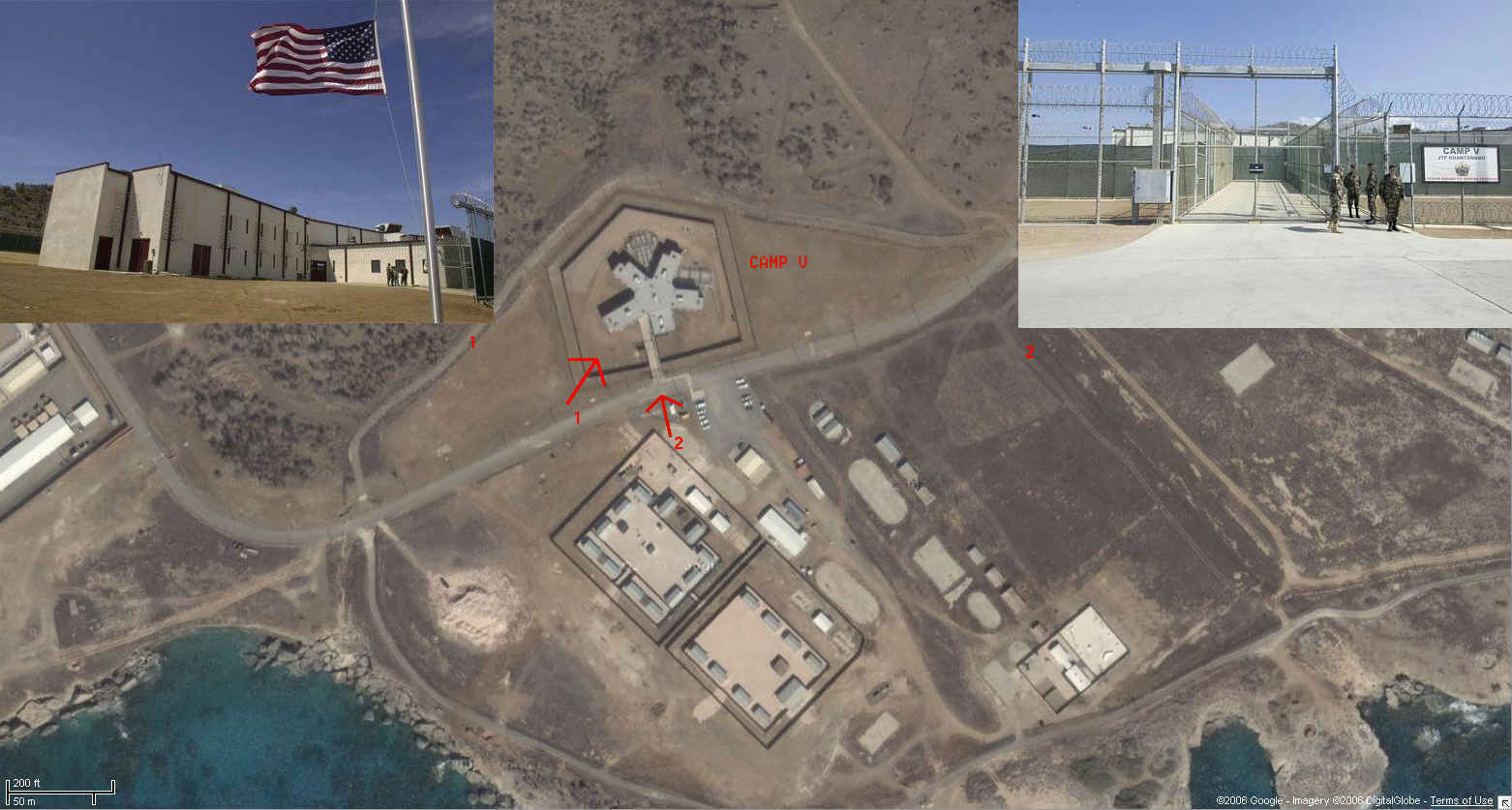 Associated Press has published a number of interior photos of the interior of Camp V and a few of the exterior. There have been few recent aerial photographs of the Gitmo detainee facilities except on Google Maps.