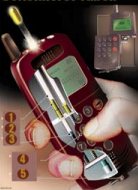 (1) From the mpeg given, there is no way to determine the authenticity of the so-called demonstration. For example, how does each of the shells reach the firing chamber? Given that the bullets "emerge" through the antenna, the shells must exchange places with the one that has just fired. The video clip did not show the lower portion of the cell phone in any detail that would make any determination possible regarding whether the claim was factual. Seems like the "keypad" trigger would get in the way.