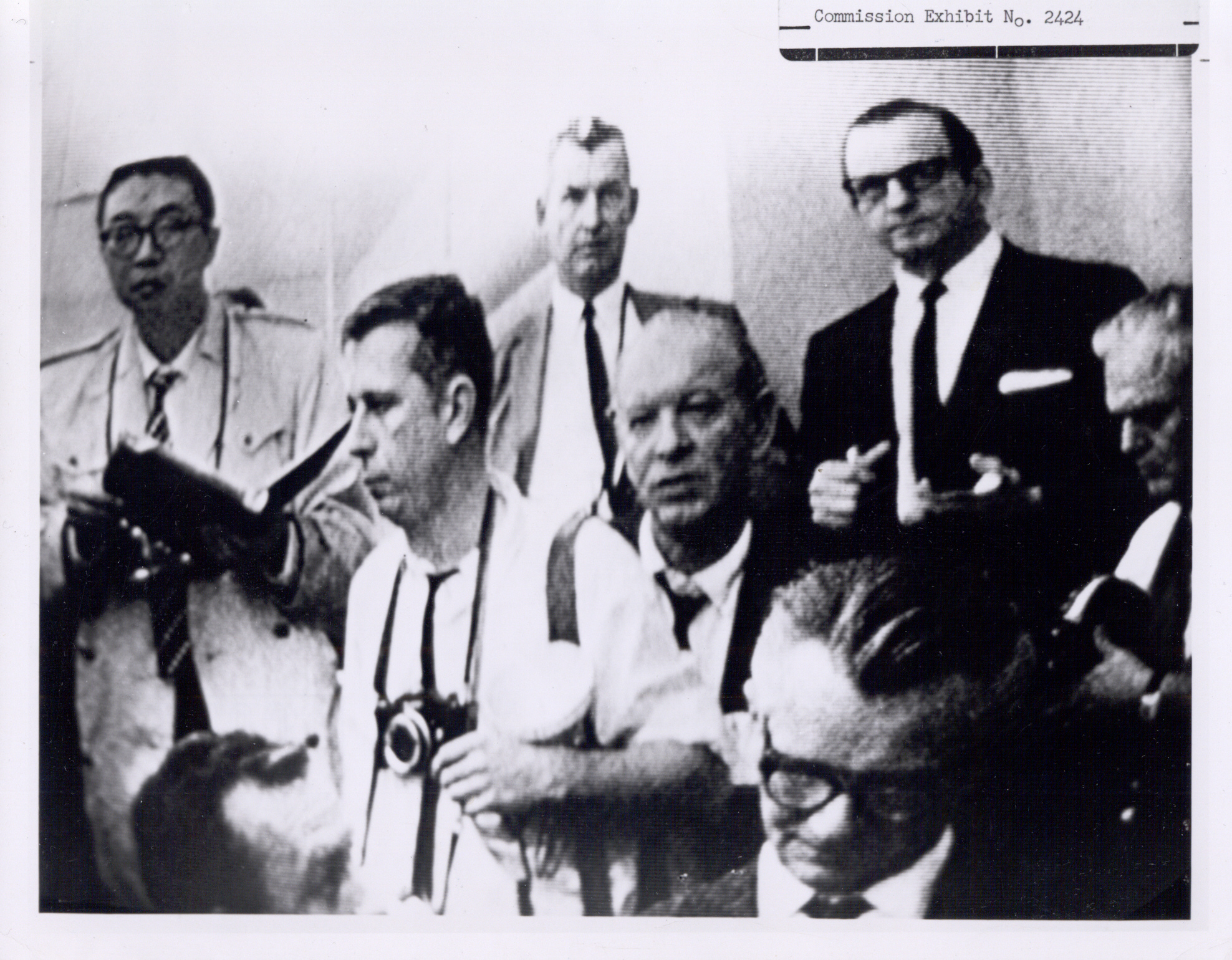 This photo, obtained from the National Archives and Records Administration, is a screen shot of a video tape made on the night Kennedy was killed at a press conference called by the Dallas District Attorney, Henry Wade. It shows Jack Ruby as well as the Japanese journalist/photographer, whose identity is unkown as well as his reason for being in Dallas that day. The Warren Commission report states: