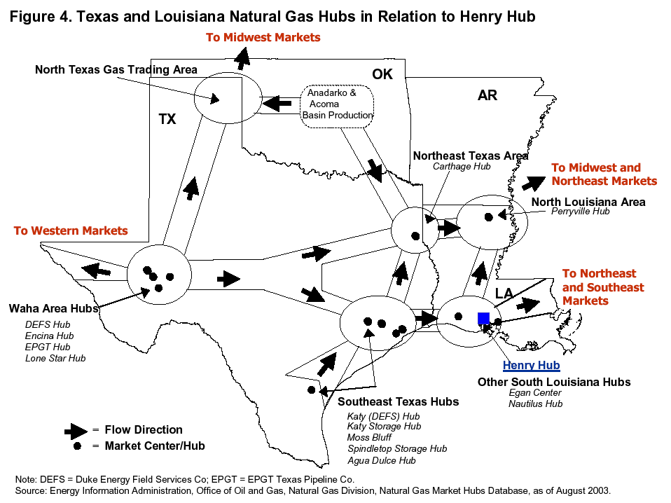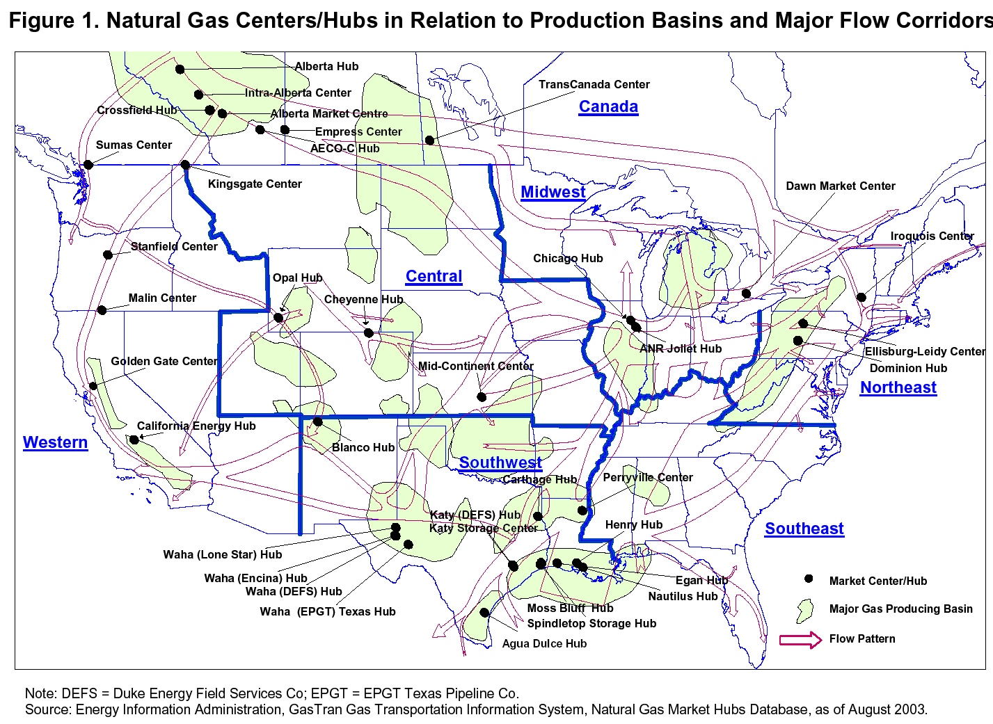 Update http://www.eia.doe.gov/pub/oil_gas/natural_gas/feature_articles/2003/market_hubs/mkthubs03.pdf |