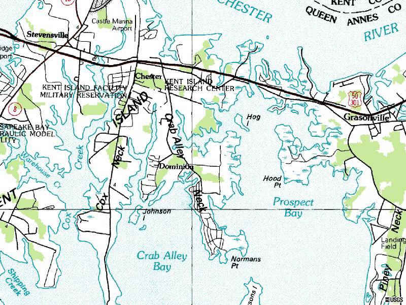 http://pirs.mvr.usace.army.mil/fuds/I-l/kent/preasses/inpr/11b.pdf1. A 31.34 acre tract which was formerly part of the Kent Island Facility is located between Cox Neck Road and Maryland Route 552, just south of the Town of Chester, Maryland. There are 178.66 acres fee and 0.16 of an acre easement of the Kent Island Facility currently active. The current owner [of the inactive portion] is the State of Maryland, Department of Natural Resources.