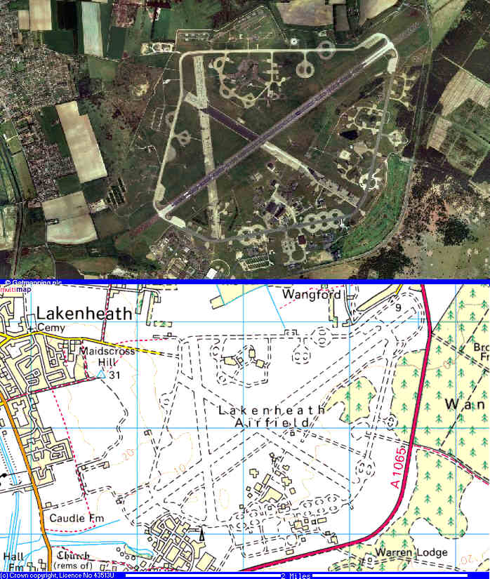 | The double-fenced area is located at upper left of this RAF Lakenheath