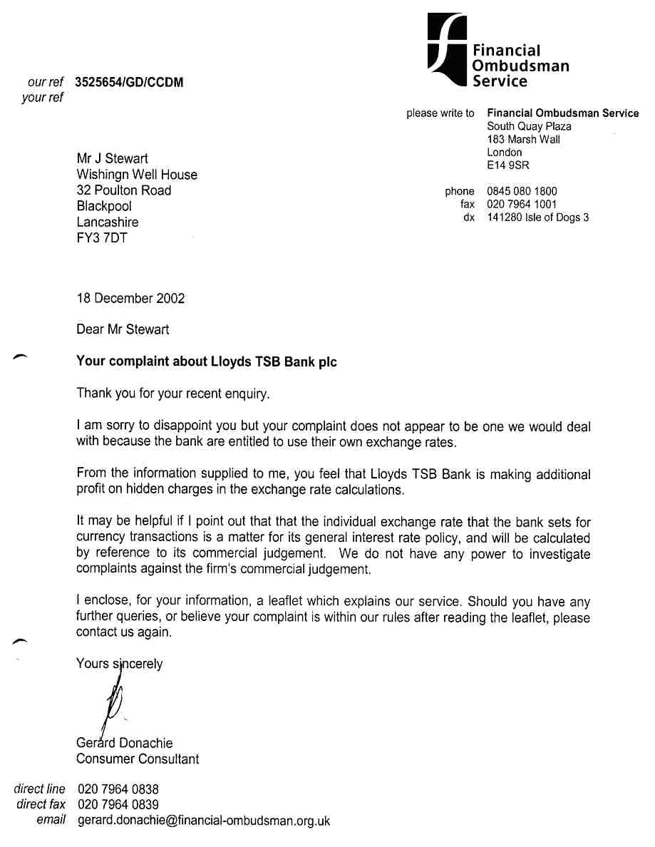 Complaint Number 1 - General - Lloyds TSB Global Exchange Rate Fraud
