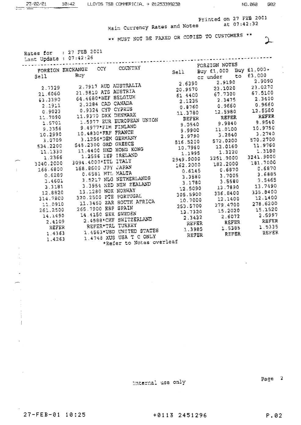 The Web Site is being constantly updated today. Have you printed a copy of Lloyds TSB's False Exchange Rate Sheet "MUST NOT BE FAXED OR COPIED TO CUSTOMERS".