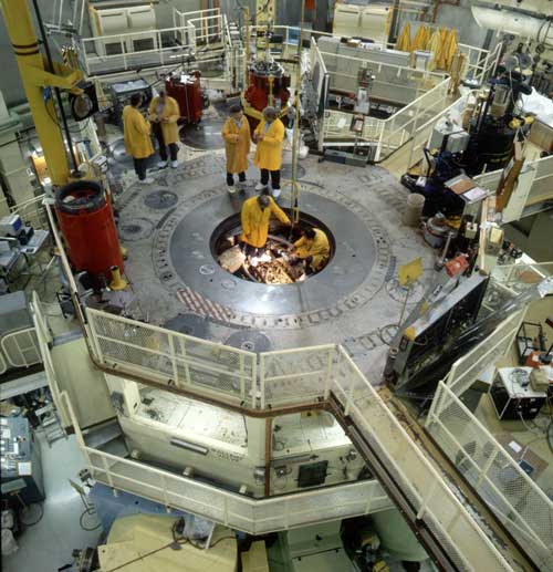 ![]() A diagram of the High Flux Australian Reactor ( HIFAR). The reactor is protected by 21m thick steel sheltering. |