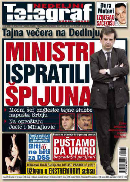 According to Nedeljni Telegraf, Monckton was shocked when his name and photograph were first published in February in a book written by Zoran Mijatovic, the former deputy chief of the Serbian intelligence service, the DB.
