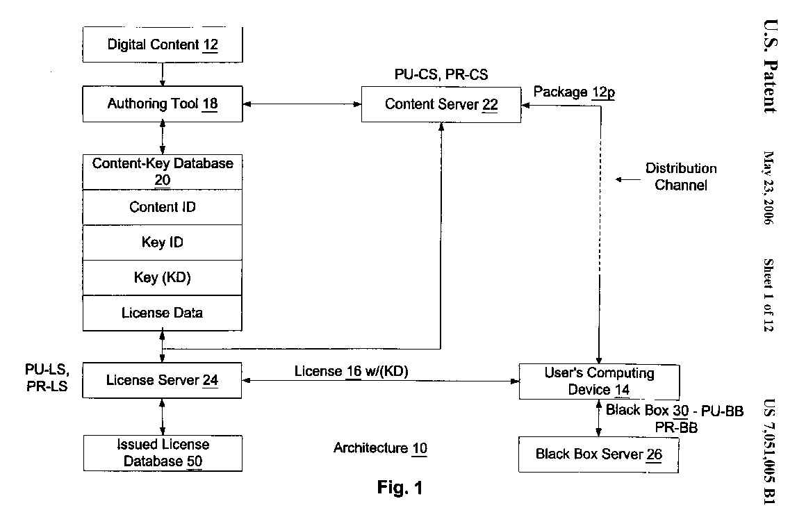 Weber, R., "Digital Rights Management Technology", Oct. 1995 (European Search Report for corresponding European application 95308417.5. cited by examiner . Kahn, R.E., Deposit, Registration, and Recordation in an Electronic Copyright Management System, IMA Intellectual Property Project Proceedings, Jan. 1994, vol. 1, Issue 1, pp. 111-120. cited by examiner . Griswold, G. N., "A method for protecting copyright on networks" IMA Intellectual Property Project Proceedings, Jan. 1994, vol. 1, issue 1, pp. 169-178. cited by examiner. |