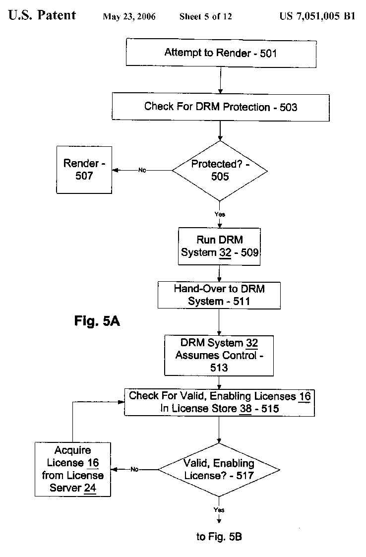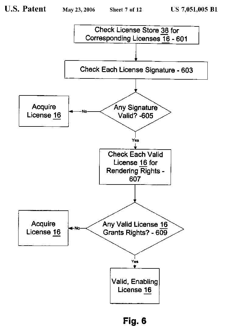 DRM system of FIG. 4 to determine whether any valid, enabling licenses are