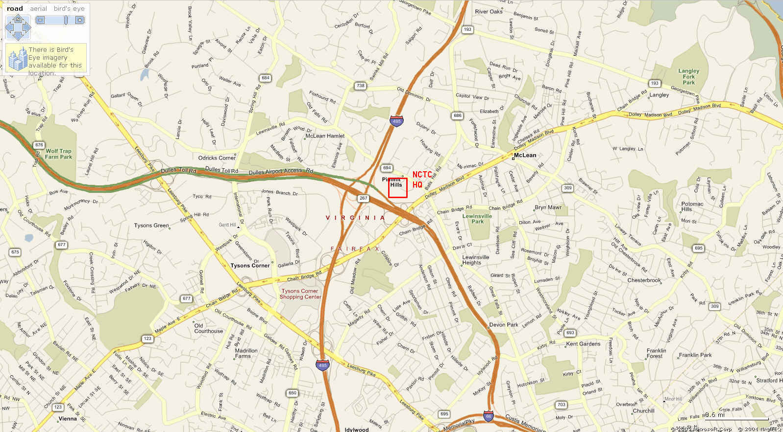 3 March 2006. Add maps and photos of NCTC Headquarters at 1500 Tyson Mclean Drive (formerly PRC Drive), Tysons Corner, Mclean, VA. Thanks to A for pointing: