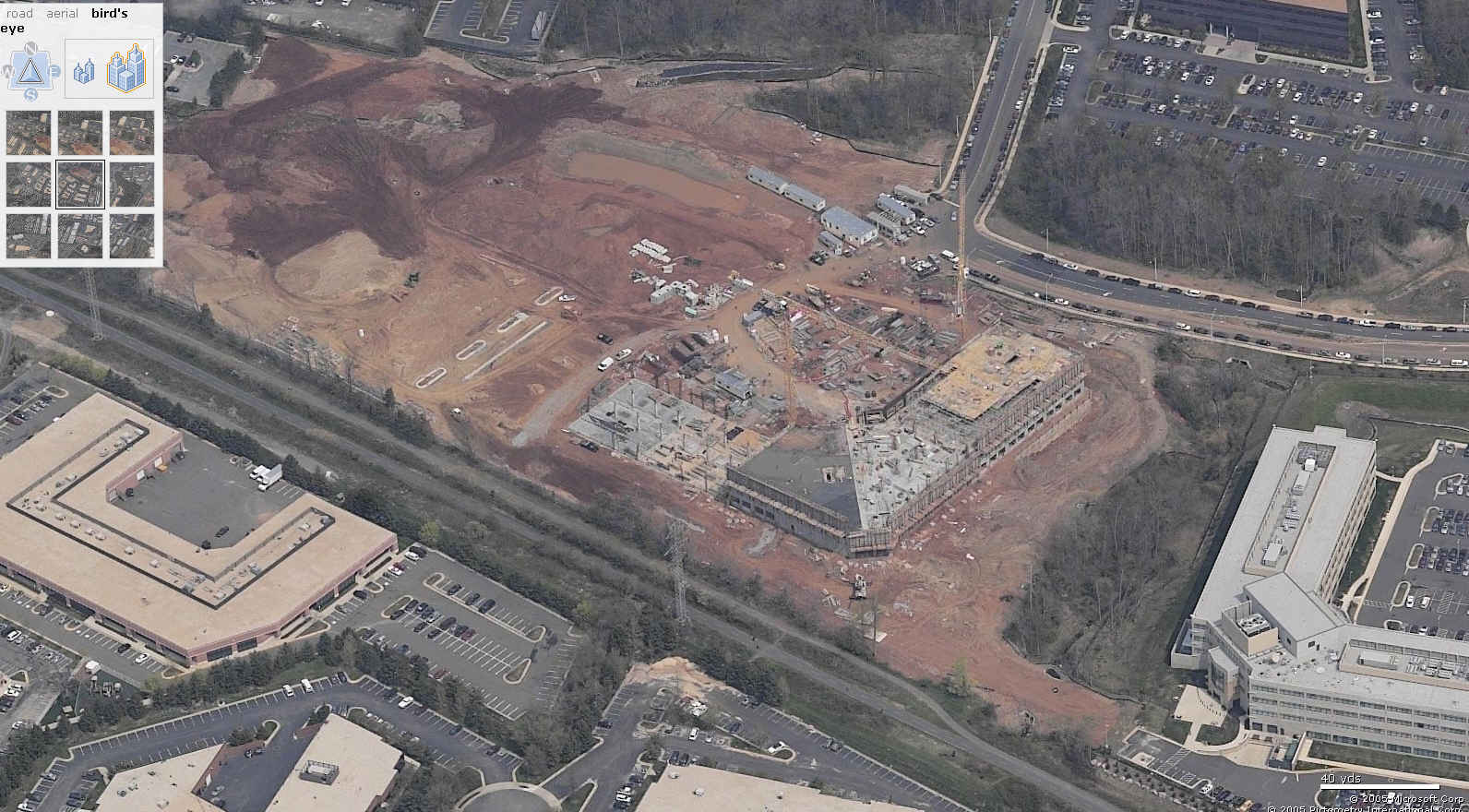 Birdseyes show CIA 2 under construction in 2004. Looking North