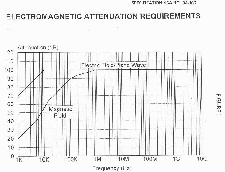 3.1 Performance. The shielded enclosure shall meet the requirements for electromagnetic attenuation as specified in Figure 1.