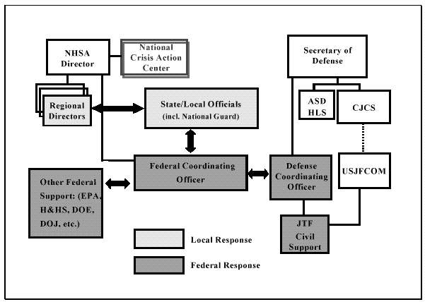 Working with state officials, the emergency management community, and the law enforcement community, the job of NHSA's third directorate will be to rationalize and refine the nation's incident response system. The current distinction between crisis management and consequence management is neither sustainable nor wise. The duplicative command arrangements that have been fostered by this division are prone to confusion and delay. NHSA should develop and manage a single response system for national incidents, in close coordination with the Department of Justice (DoJ) and the FBI. This would require that the current policy, which specifies initial DoJ control in terrorist incidents on U.S. territory, be amended once Congress creates NHSA. We believe that this arrangement would in no way contradict or diminish the FBI's traditional role with respect to law enforcement.