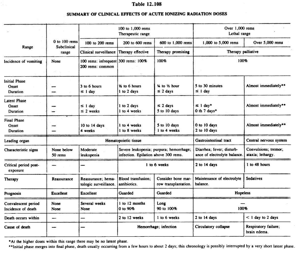 12.233 Morphologic changes in the human reproductive organs, compatible with sterility, are thought to occur with doses of 450 to 600 rems. Various degrees of temporary sterility were found among surviving Japanese men and women. Many supposedly sterile from exposure to significant doses of radiation have since produced children who are normal by ordinary measurements.