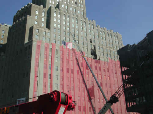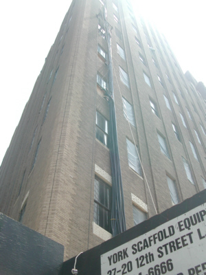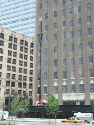 ![]() 40 West Street , temporary cables running down face. Photo: Cryptome, 10 July 2002 |