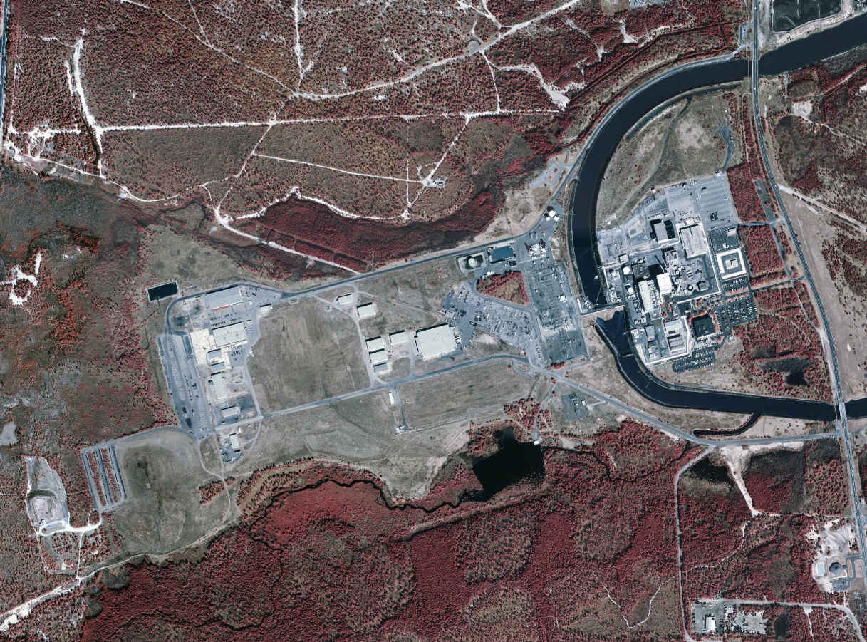 Few high-resolution satellite images of US nuclear power plants are available. Exceptions are this one at Oyster Creek, NJ, Salem-Hope Creek, NJ, Braidwood, IL, Dresden, IL, and McGuire, NC, available from USGS satellite photo coverage.