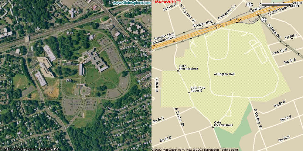 Not far from addresses 4/5 and 6 are CIA-related and CIA installations, respectively, at the National Foreign Affairs Training Center (NFATC) at Arlington Hall, Arlington, VA (below) and at Tyson Corners, VA (below).