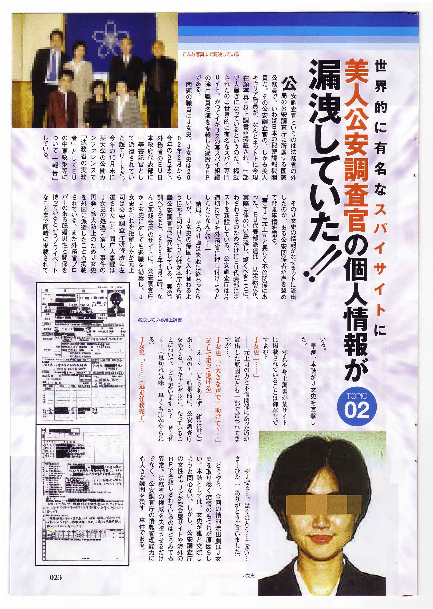 On December 16 (local time), a Japanese monthly magazine reported your web-posting about the PSIA spy officer.