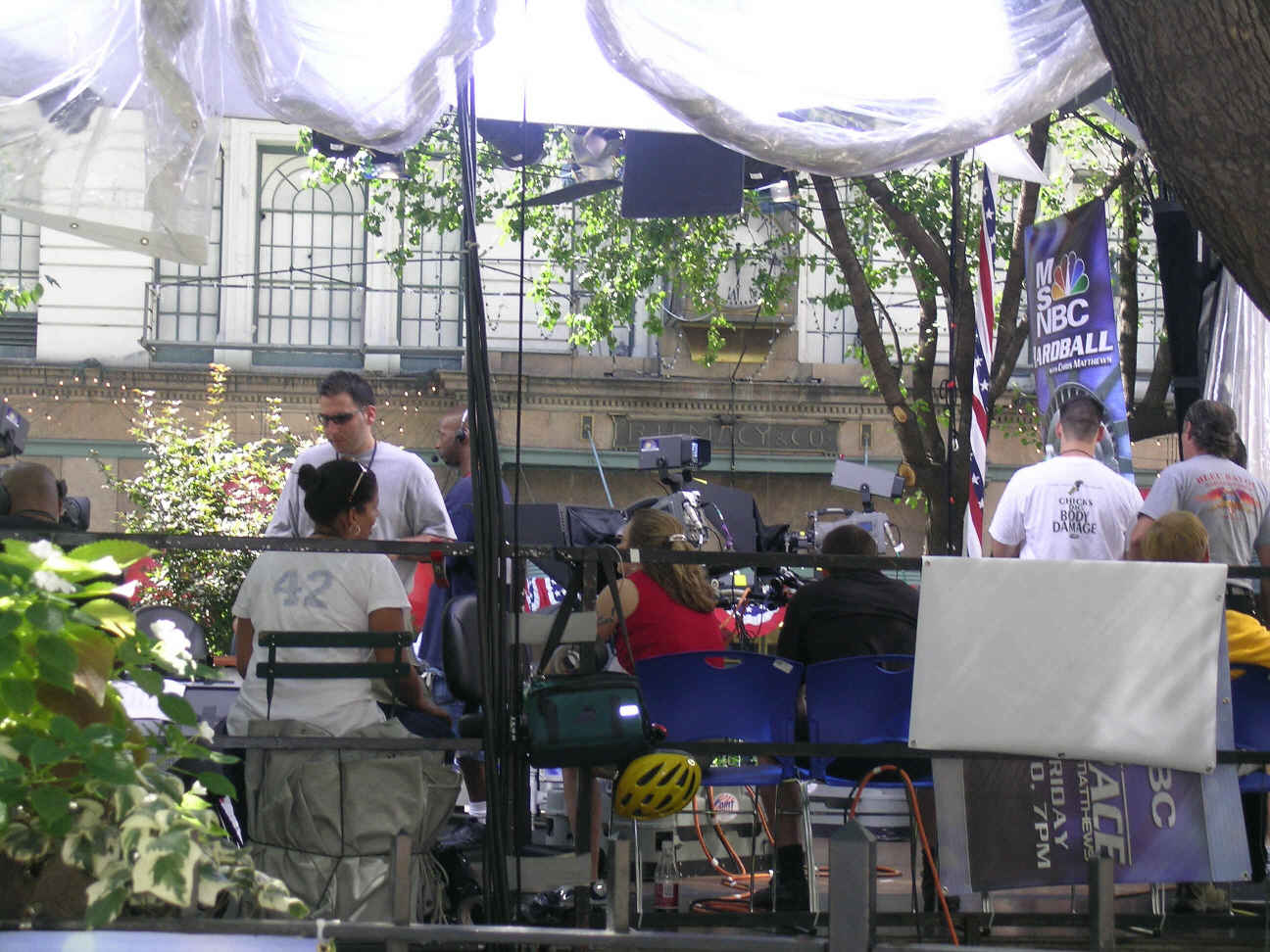 Chris Matthews/Hardball outdoor interview stand, West 34th and 6th Avenue. |