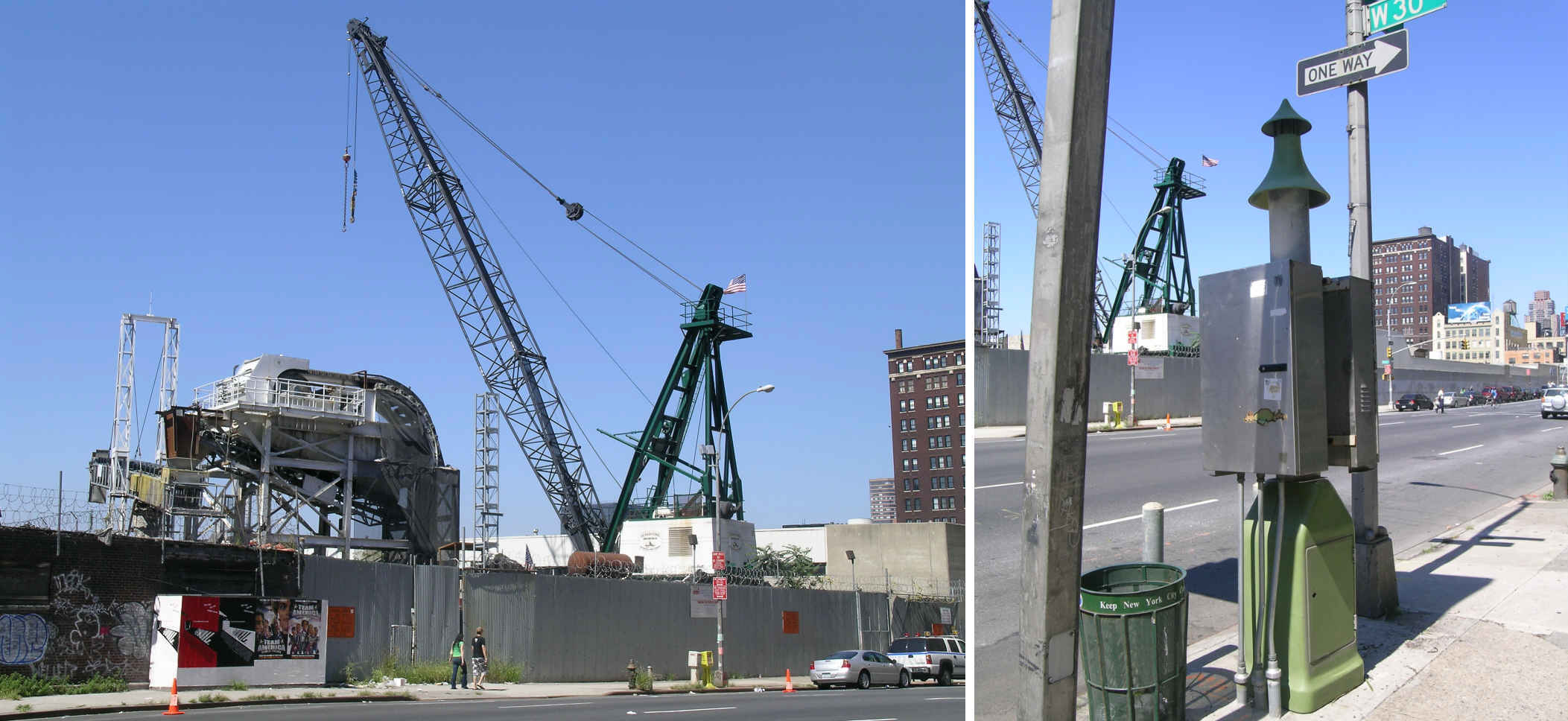 NYC's new water tunnel under construction at left, high-pressure gas regulator/vent at right, 9th Avenue and West 30th Street. |
