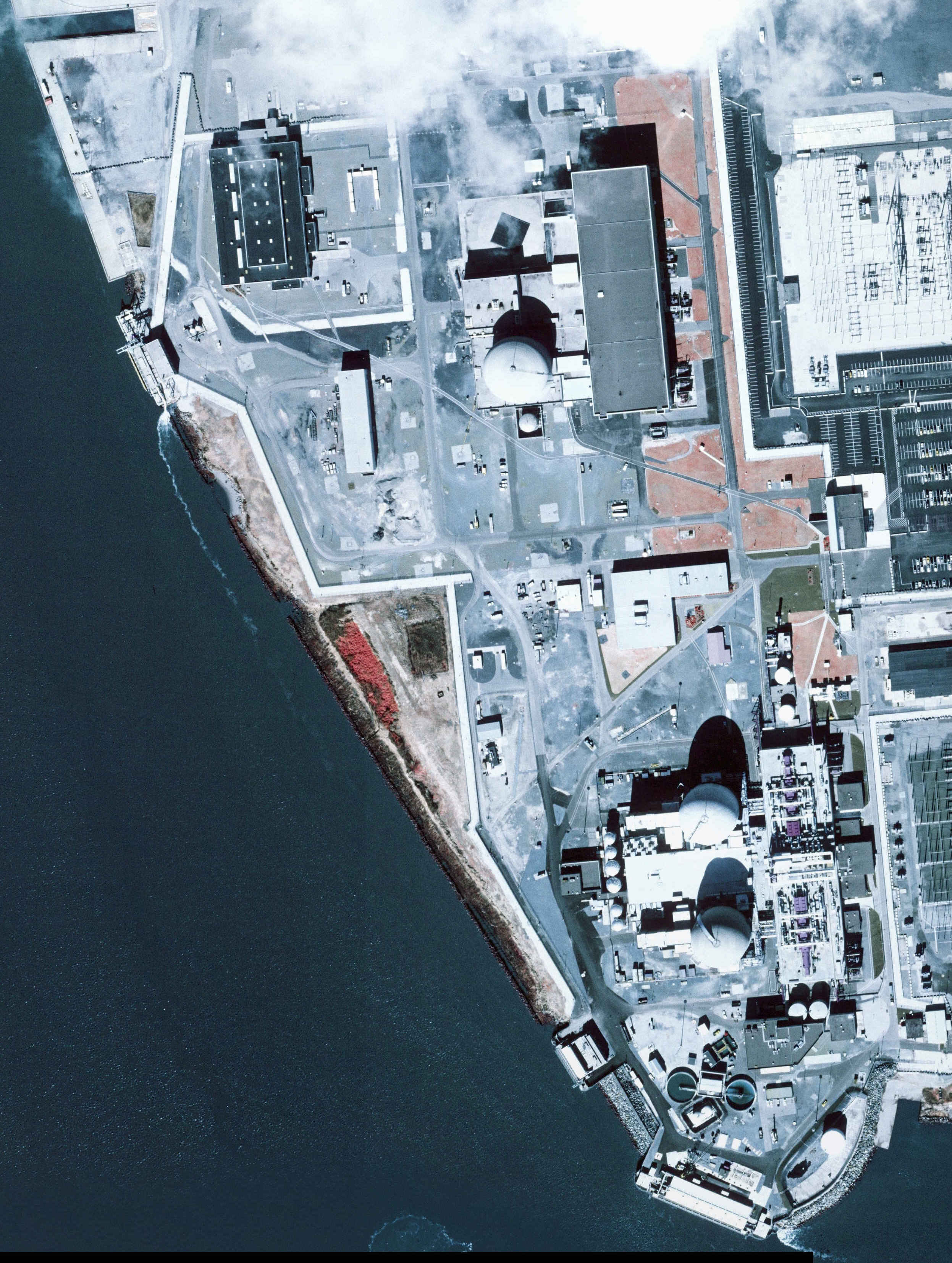 Few high-resolution satellite images of US nuclear power plants are available. Exceptions are this one at Salem-Hope Creek, NJ, Oyster Creek, NJ, Braidwood, IL, Dresden, IL, and McGuire, NC, available from USGS satellite photo coverage.