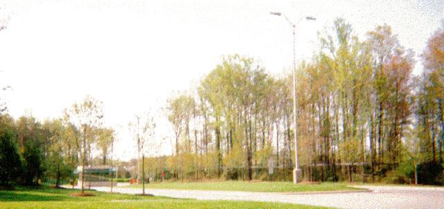 Beltsville Communictions Annex outside fence. Triangular antenna at right. It appears the photographer was on the property at the upper right of the aerial photo (but the blue bulbular tower should be visible at the left -- perhaps not yet erected at the time of this photo). There's a trail connecting the two facilities just visible amongst the trees, and could have been used by the imaginative photographer to approach Beltsville from SCS hidden from the view of the guards. |
