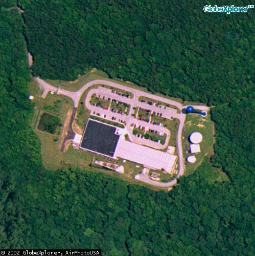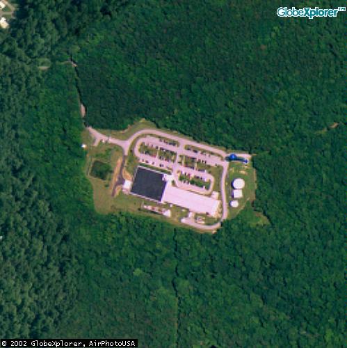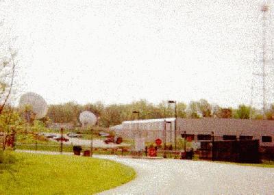 ![]() Beltsville Communications Annex Note triangular antenna below the building (which appears horizontal due to angle of the photo) and the blue bulbular tower at upper right of the clearing -- there appearst to be a similar bulbular tower adjacent to the SCS facility just visible, and foreshortened, at the right treeline. |