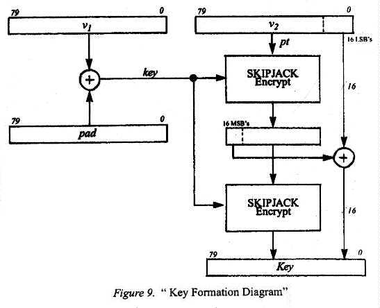 A. SKIPJACK Modes of OperationSKIPJACK is a 64 bit codebook utilizing an 80-bit cryptovariable. the modes of operation are a subset of the FIPS-81 description of modes of operation for DES [1]. These include: