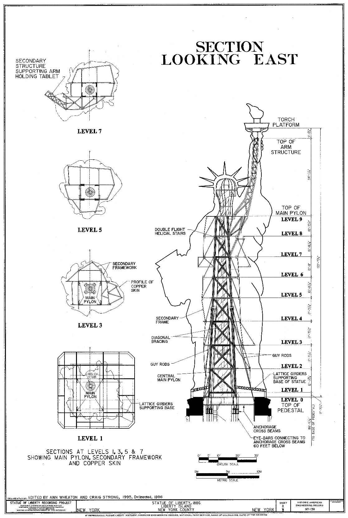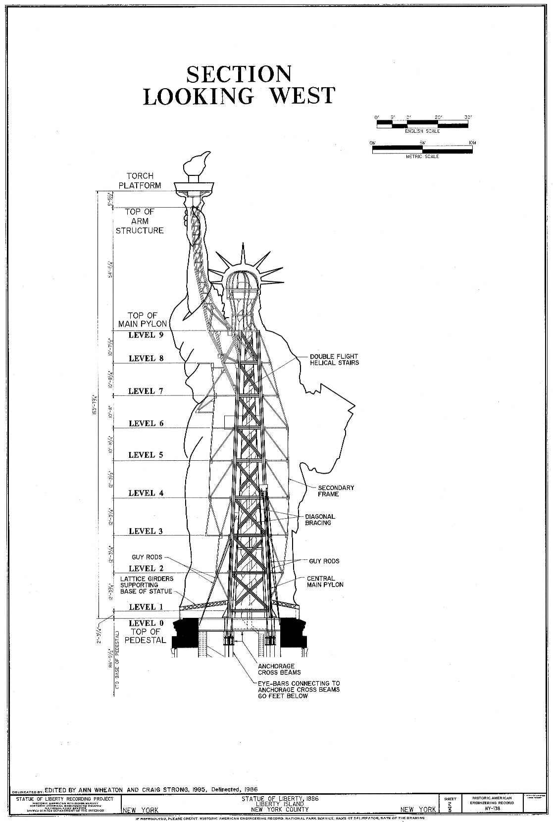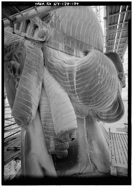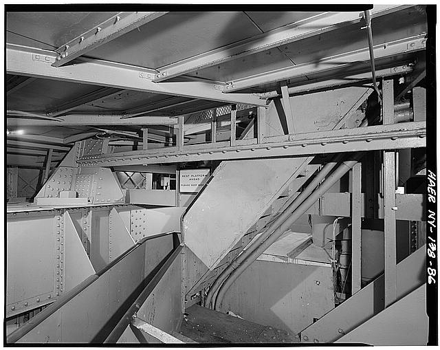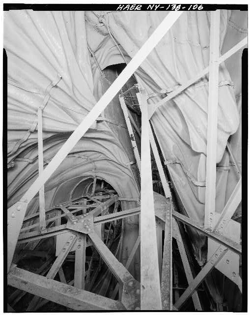of statue and anchorage beam between levels 4 and 5. February 1984. HAER, NY,31-NEYO,89-72