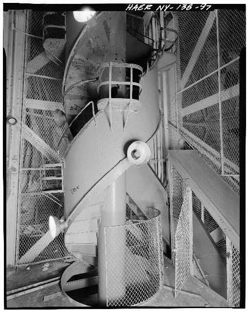 110. View looking down from torch arm at cylindrical ventilating fan.