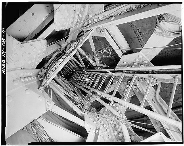 pylon and cross beams at right, December 1985 HAER, NY,31-NEYO,89-150