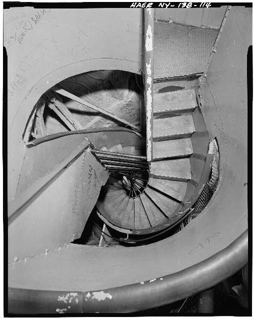 97. Double helical stair at base of statue. February 1984. HAER, NY,31-NEYO,89-97