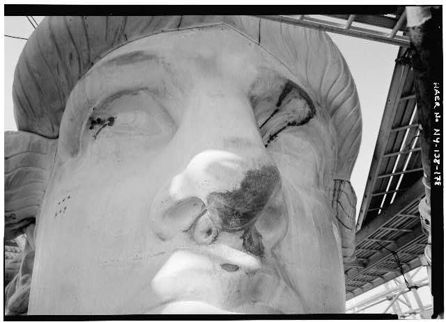 232. GENERAL VIEW OF STATUE LOOKING NORTHWEST HAER, NY,31-NEYO,89-232 [Before restoration.]