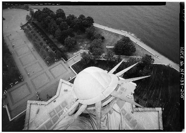 205. VIEW FROM THE TORCH OF THE CROWN AND LANDSCAPING. HAER, NY,31-NEYO,89-205 [After restoration.]