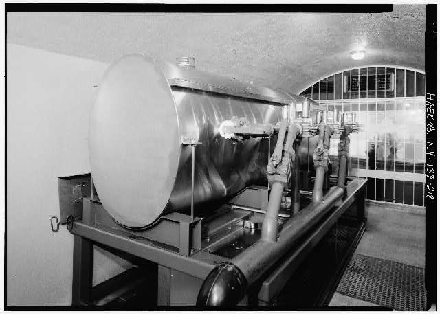 218. OIL TANK FOR POWERING HYDRAULIC ELEVATOR. HAER, NY,31-NEYO,89-218 [After restoration.]