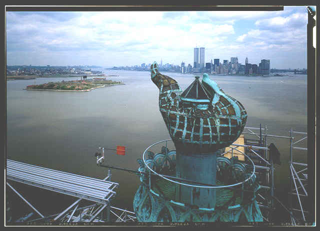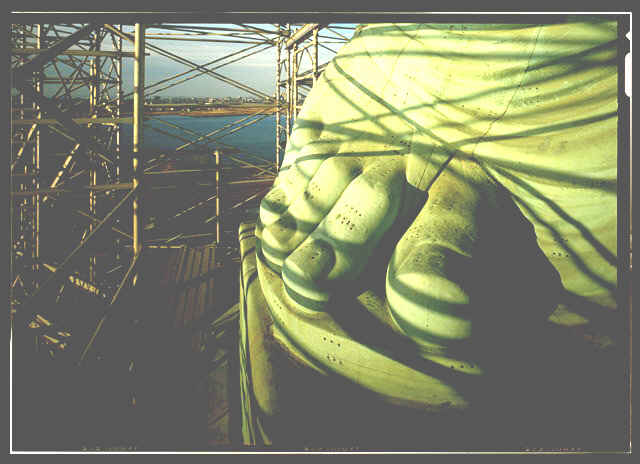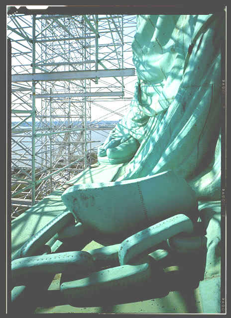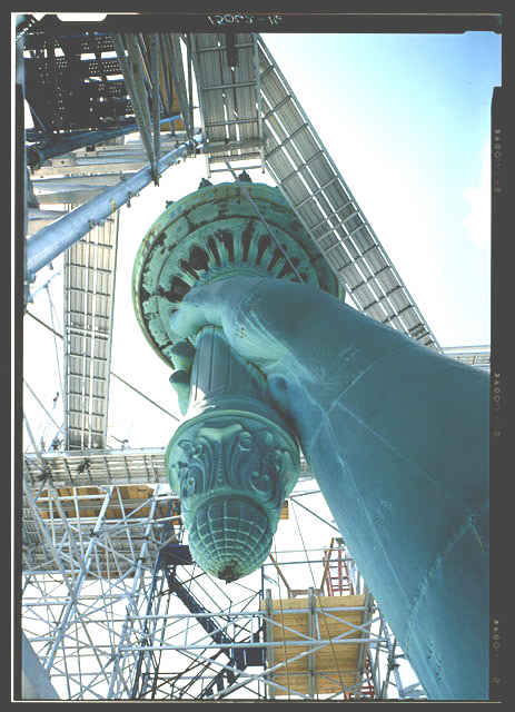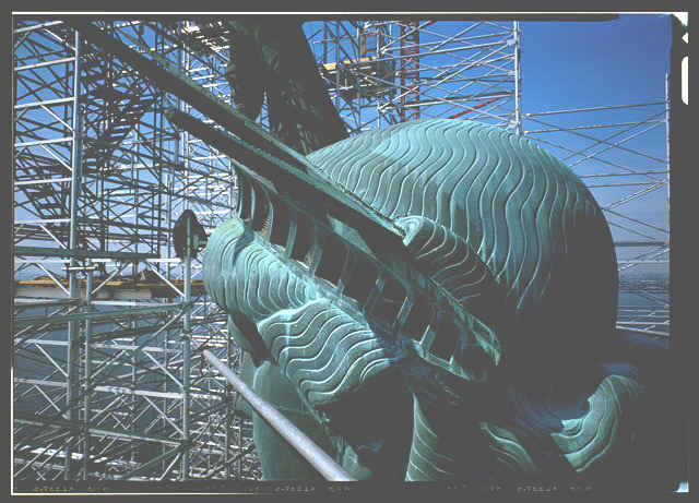 The selections below are from the full collection of several hundred images and documents on the restoration of the Statue of Liberty in the 1980s. Links below photographs for enlarged images go to the Library of Congress. Source of photos: