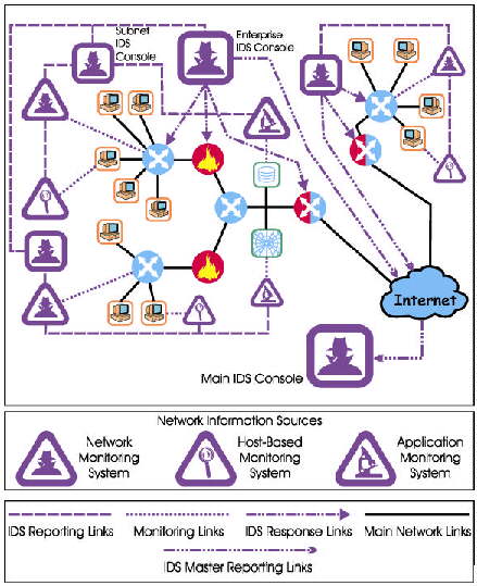 Intrusion detection systems are made up of three functional components, information sources, analysis, and response. The system obtains event information from one or more information sources, performs a pre-configured analysis of the event data, and then generates specified responses, ranging from reports to active intervention when intrusions are detected.