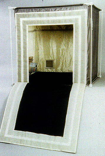 Made with Monsanto's Flectron metallized fabric, the lightweight, portable shielding enclosure is a development of BEMA, Inc. a Virginia company specializing in portable shielding enclosures. The patented SE-2 enclosure is effective against electric and plane wave fields. This fabric-based structure offers significant advantages over shielding structures presently in use which are expensive, difficult to assemble and disassemble, heavy and awkward to transport. In addition, currently available structures only provide 15 to 45 decibels of shielding in electric and plane wave fields.