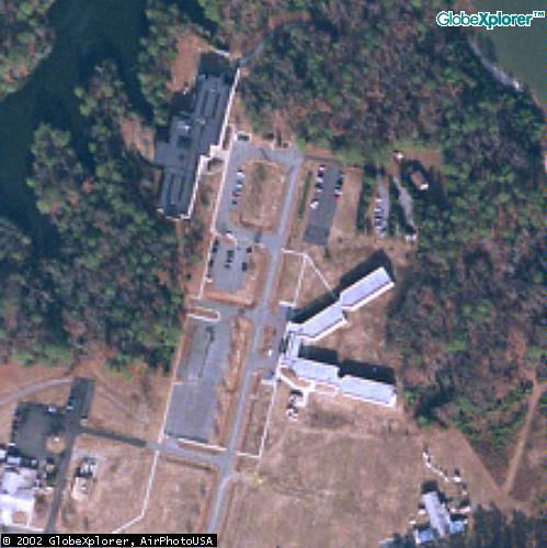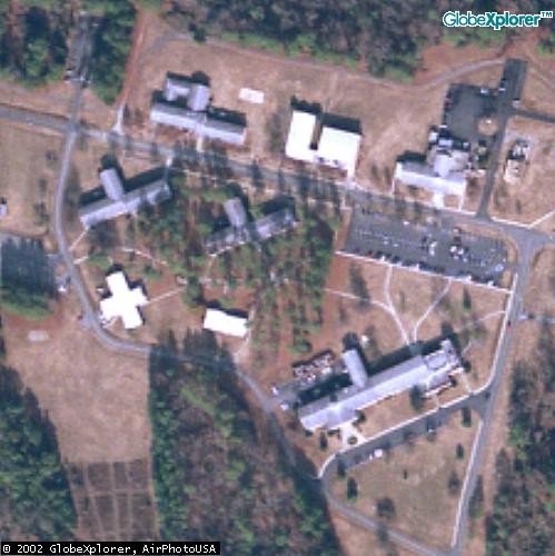 It is not clear if these and those at right are CIA facilities; they are shown outside of John Pike's property boundary above but are linked to the STC by a footbridge (see upper right of large photo). They may be used by an affiliated government agency or private organization. |