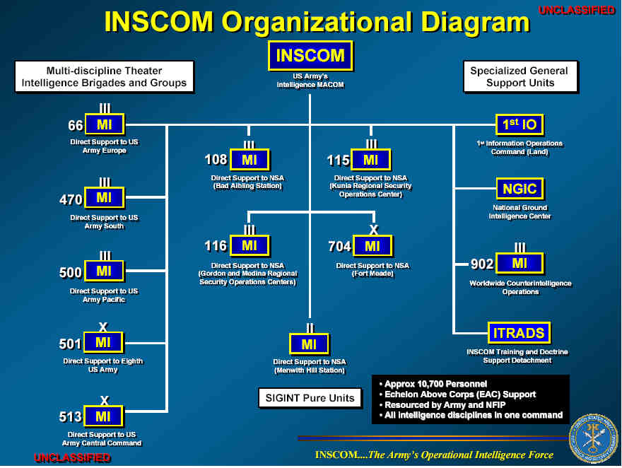 Hon. Jack O. Marsh Jr., member of TAPAC, described the findings of his trip to the U.S. Army Intelligence and Security Command (INSCOM) to other Committee members. INSCOM is the test bed for the TIA program and reports up the chain to the Chief of Staff of the Army. INSCOM conducts the testing in such a way that TIA only uses data that INSCOM already has legal access to and does not use any information that refers to U.S. persons. Eight of the more than one dozen programs under the umbrella of TIA are being tested at INSCOM.