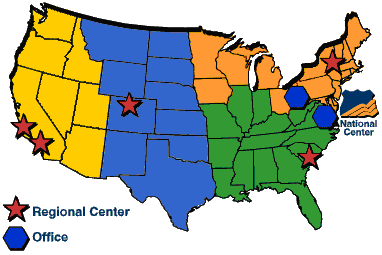 A National Center, five Regional Centers, and two Special Offices provide technology assistance, information, and support to the law enforcement, corrections, and criminal justice communities. Click below to learn more about and connect with the desired Center or Office: