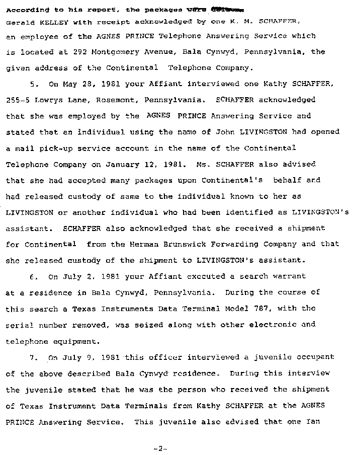 Ian Murphy utilized a variety of false name including "John Livingston". He also utilized a series of fake company names including "Continental Telephone Company".