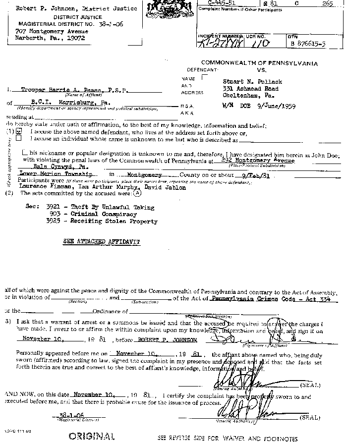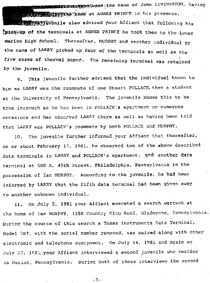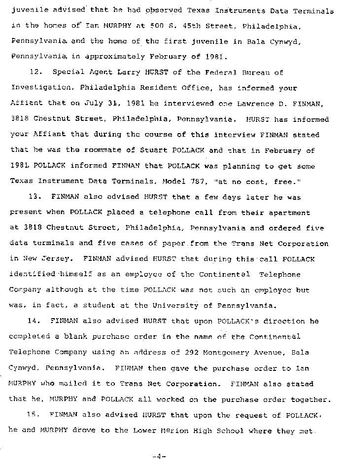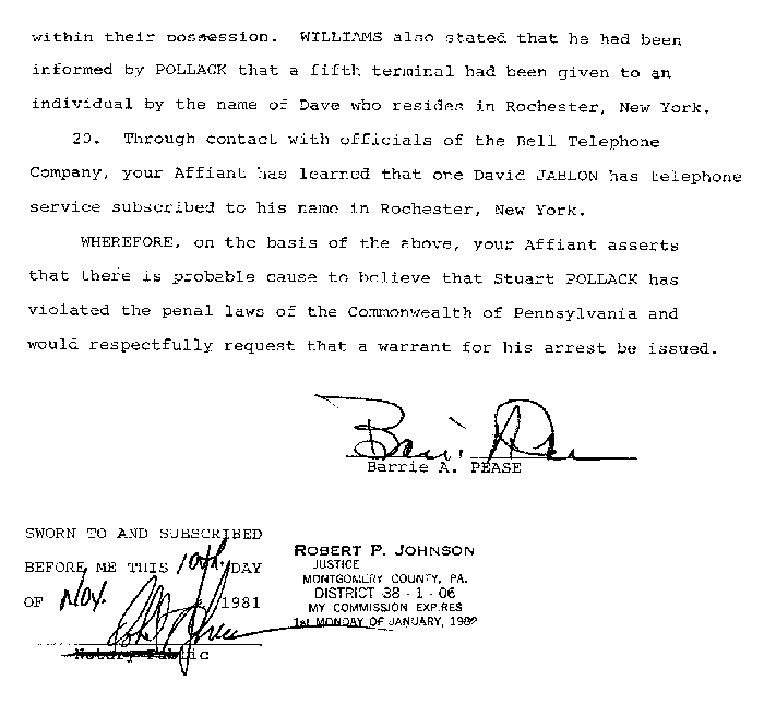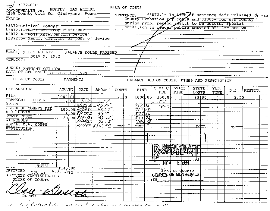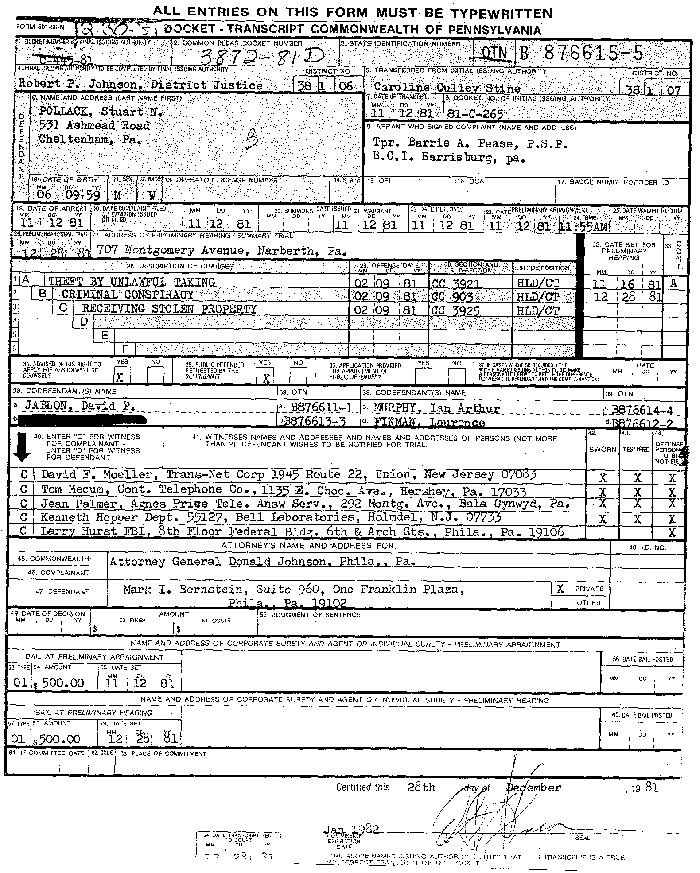 Court documents indicate that the subject is a petty thief, forger, fence, liar, and con artist (not a hacker or phone phreaker). There is no mention in any of these court documents of any type of computer hacking activities or phone phreaking activities (only theft of computer equipment and supplies).