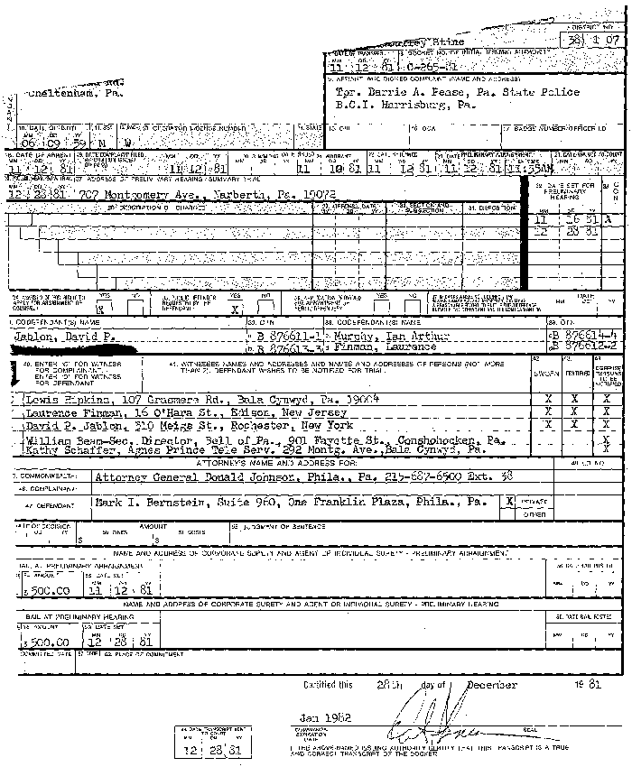 We have had numerous requests for the "1981" documents, low resolution versions have now been placed on-line for fast browser loading and direct downloading. Please Email if you would like high resolution versions of the documents provided to you. This is only a partial list of legal, police, and court documents regarding the subject, and it is by no means inclusive. Please contact us if you need any further information.