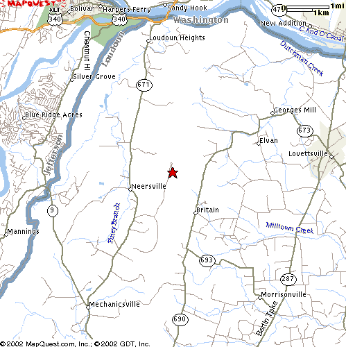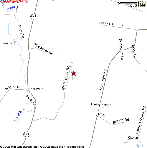 As I was driving through Purcellville, VA a few weeks ago I stumbled across a large 4' x 4' brown/white AT&T sign. A little past the sign was a handpainted white/black sign that said something to the effect of "no trespassing". Inquisitive freak that I am, I drove up the road to discover a series of green steel mailboxes [like the USPS navy blue ones] and a sign that said something to the effect that "unauthorized persons would be prosecuted". The "persons" verbage was a little puzzling, so I did not drive any further. Further investigation into White Rock Road has revealed the following:[1] Aerial photos of the area show that the road was constructed to thwart attack. It begins straight up hill but then turns 180 degrees in the other direction.
