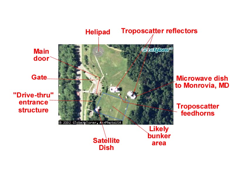 Here are some updated materials, "from Anonymous"The site is an old AT&T Autovon Switch bunker and antenna site with line of site hardened microwave system. AT&T still leases space for fiber optic runs, and the government still uses the facility for "special things". Mostly the site is a relic of the cold war with two foot thick concrete walls, multiple generators, and virtually blast proof. In the event of an attack on DC this is also one of the COG [continuity of government] sites, and several dozen people of the recall list would be housed here.