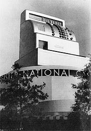 A symbol that haunts plans for the reconstruction of ground zero: the National Cash Register Pavilion, by Ely Jacques Kahn and Walter Dorin Teague, at the New York World's Fair of 1939. Photo: Museum of the City of New York. |